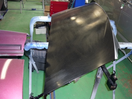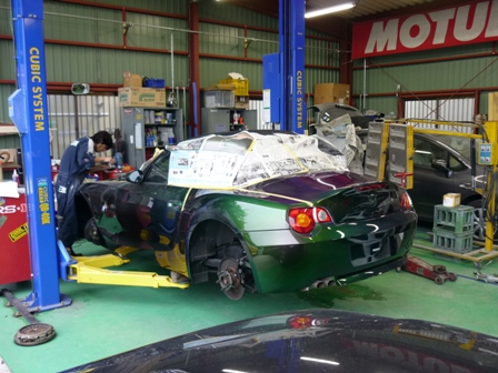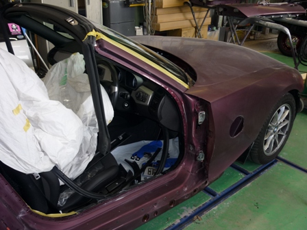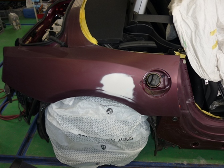 パーツを取り外したらボディのヘコミとかキズを修理します。取り外したパーツも修理します。
