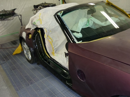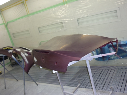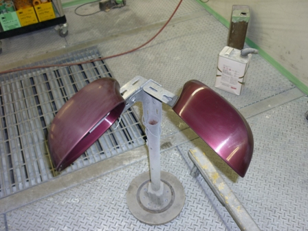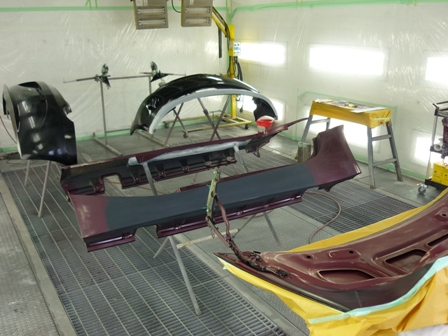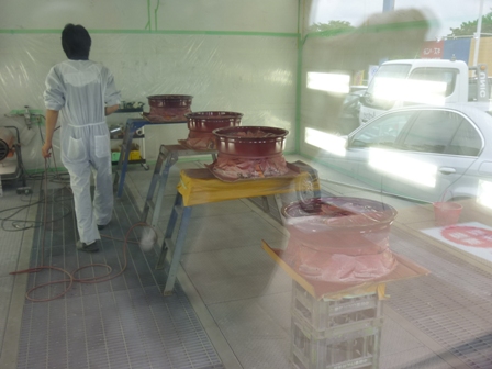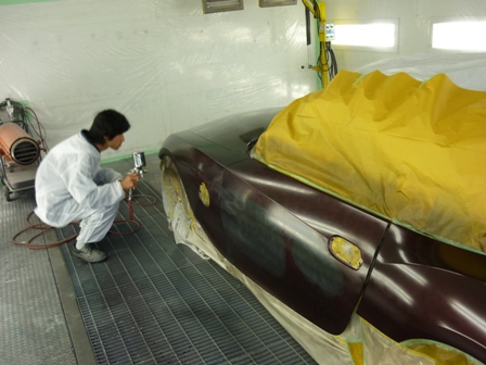 小さなホコリも塗装の大敵。特注の塗装ブースでホコリをシャットアウト!しかし、この塗装は塗り回数が多くて大変!