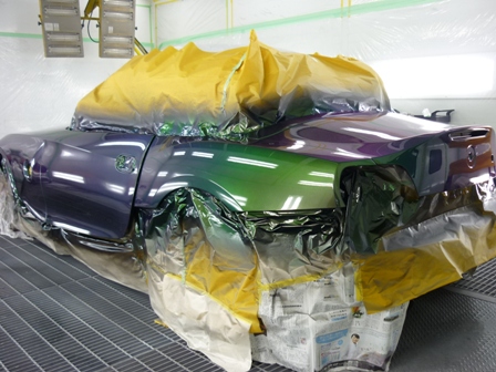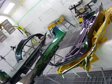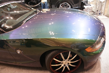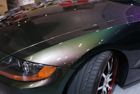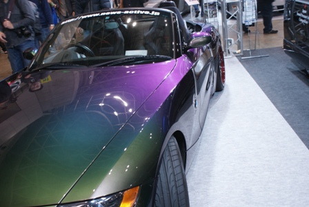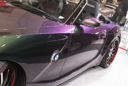 今回の東京オートサロンのために、まずは色替えだろうといろいろ悩み、PPGのハーレークイーンに決定。