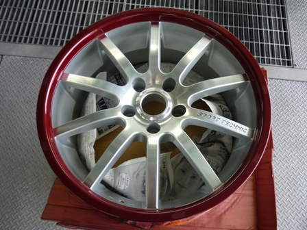 サスペンションはH&Rのダウンサスへ交換。SPORTTECHNICのアルミホイールをレクサスのレッドへ塗装中。