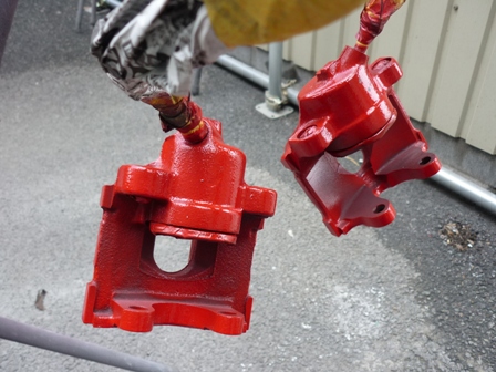 汚なっブラストしてスッキリ!ブラケットもブレーキローターも耐熱塗料でリフレッシュ!キャリパーも耐熱塗料でリフレッシュ!
