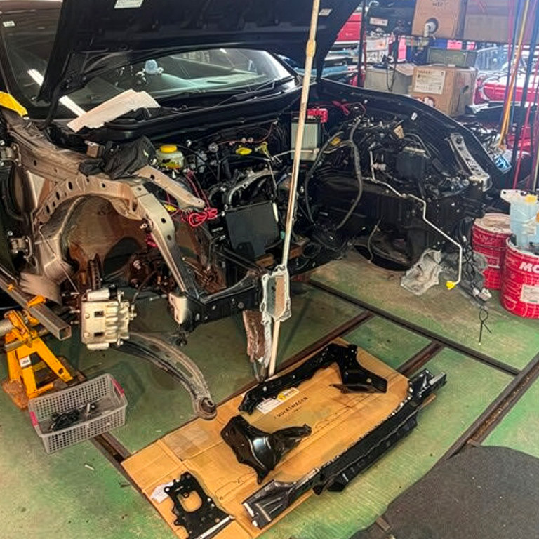 まず、「安全性の確保」というのは、事故の時に衝撃を吸収してくれるフレームの修復ができるか。また、エアバックや電子制御システム、サスペンション、ブレーキ関係などの点検チェック体制が確立されているか。